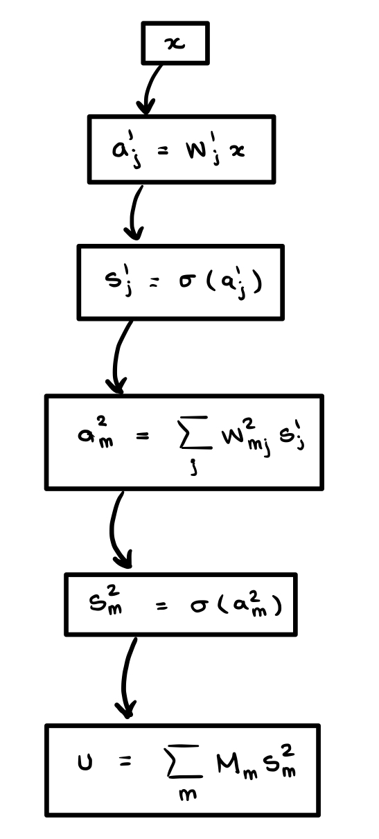We can alternatively understand the network through the recursive formulas