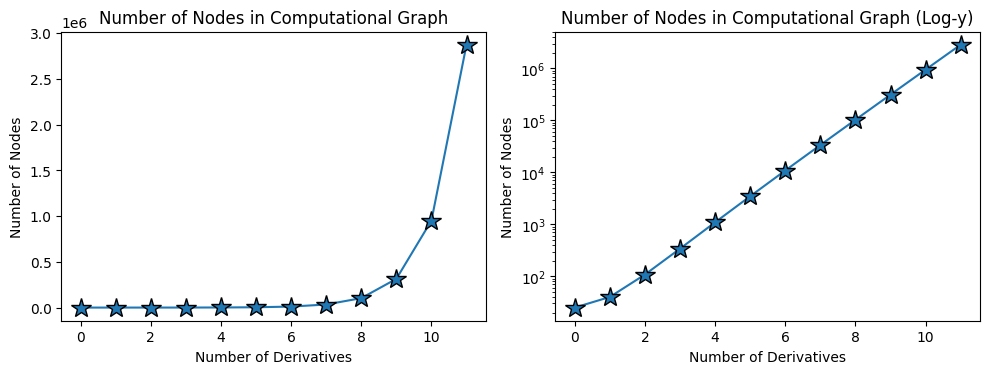 That is, , where is the number of derivatives and hence the computational graph will grow like .