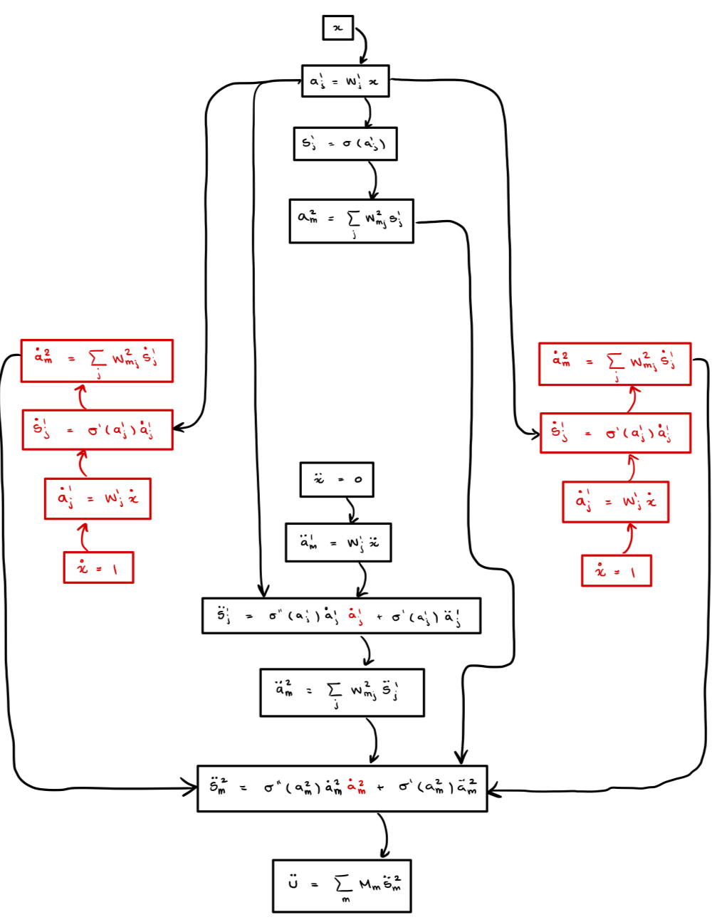 Finally, we leave the reader with the computational graphs for the second derivative computed via -TangentProp and ask that you compare this with the graph we drew for the second derivative above.