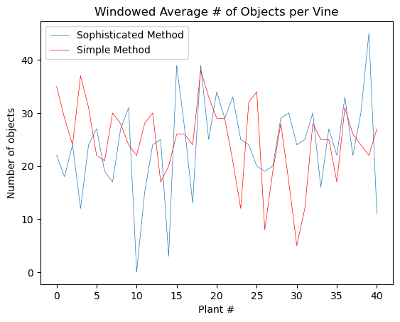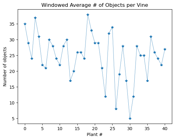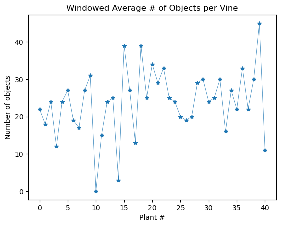 plt.title('Windowed Average # of objects per Vine')